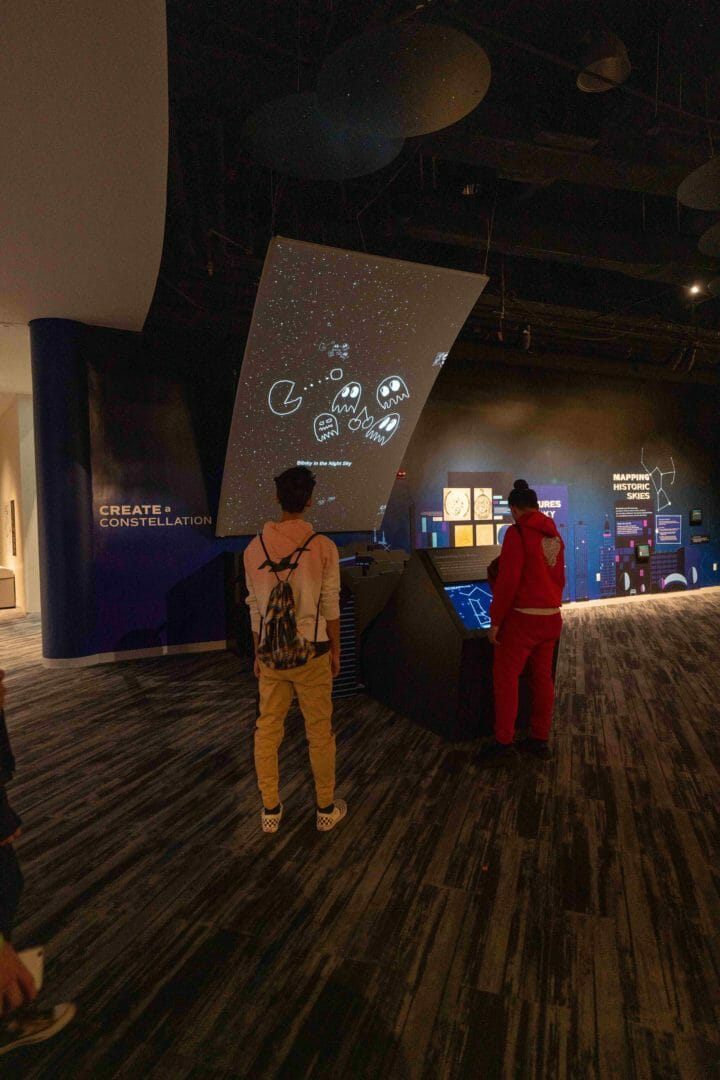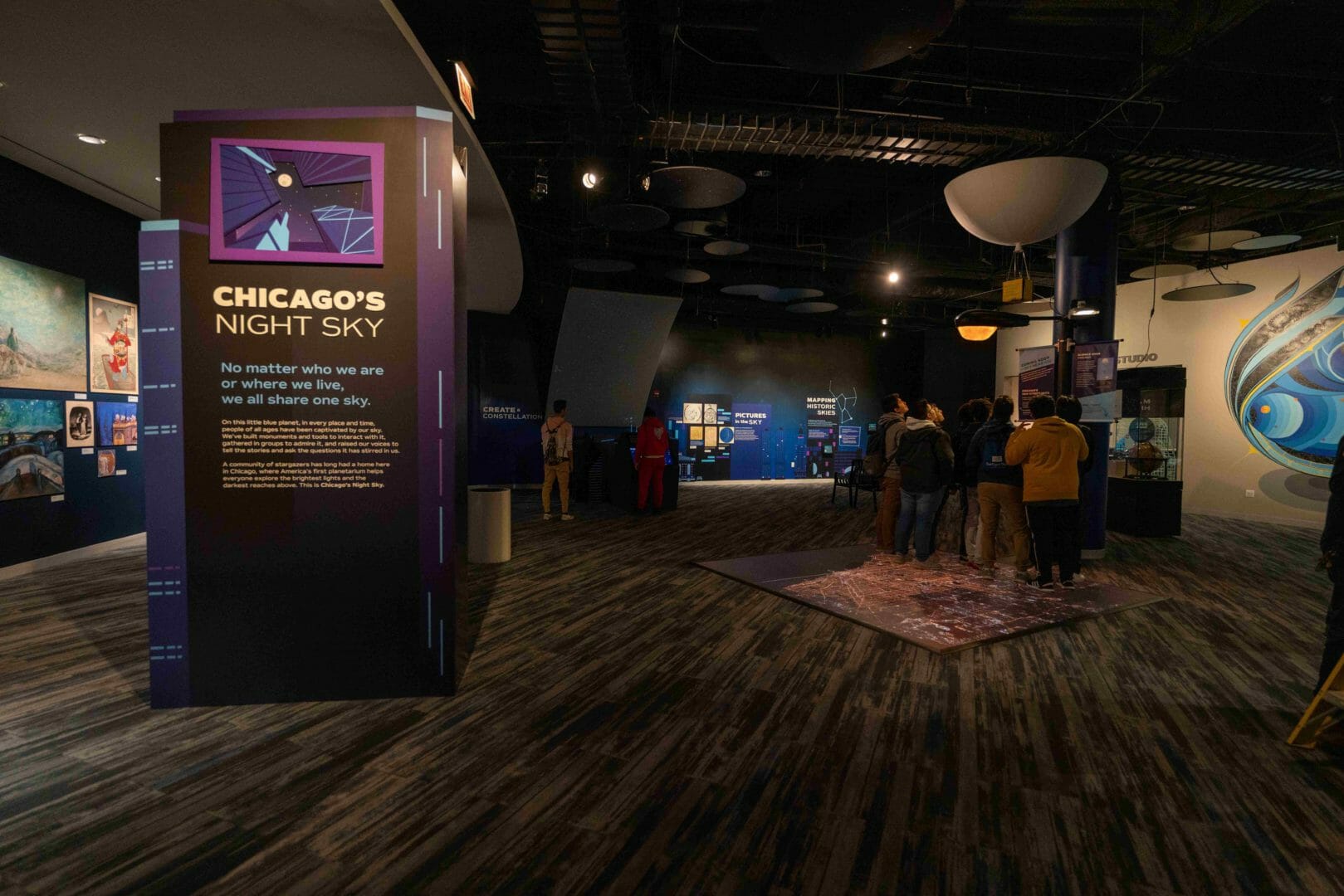 Visitors using the “NiteLite Selfie Station” pose on a backdrop of Chicago’s light grid as an overhead weather balloon takes their photo. “Create a Constellation” encourages imagination and creativity as visitors connect stars to form their own unique designs. To extend the experience, visitors can text or email their creations.