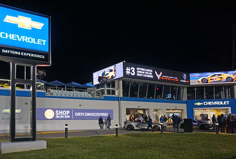 At Daytona International Speedway, Chevrolet’s infield dealership is more than a showroom. It’s a brand destination built to support race-week energy, elevate guest engagement, and serve the GM racing team and customers during events. Bluewater helped bring the experience to life with exterior LED, building-wide video distribution, and flexible digital signage.