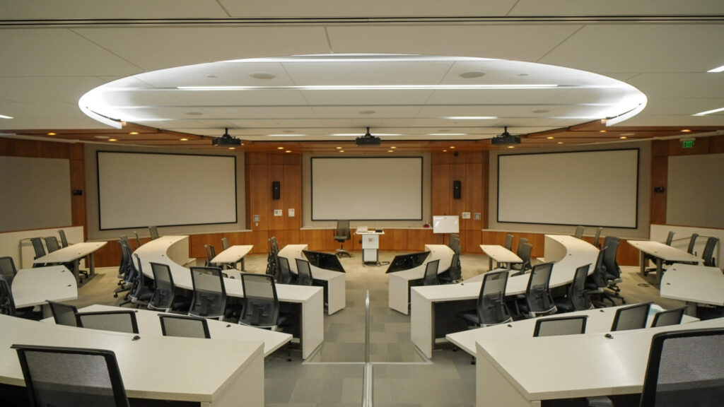 To meet these evolving needs, Bluewater partnered closely with WMed’s leadership and IT team. Through collaborative planning sessions, product testing, and careful timeline management, we co-developed a design strategy that would modernize four critical spaces: two TBL classrooms, a boardroom, and the auditorium. By aligning on goals early and leveraging WMed’s input throughout, we ensured that upgrades would balance innovation with practicality, reusing legacy equipment where possible to maximize cost-effectiveness.